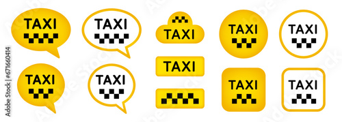 Taxi service icon set. Yellow speech bubble