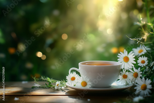 Tea and flowers in natural morning light
