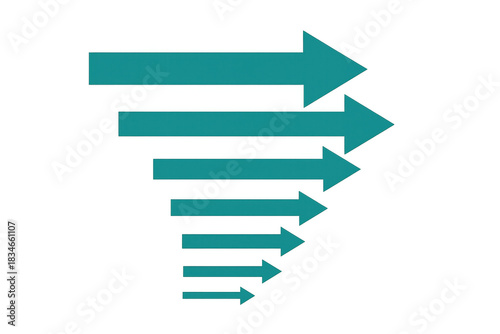 Teal arrows moving right indicating flow, progress, direction, and increasing size in a hierarchy concept