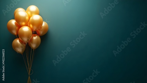 Teal background with gold balloons and lots of space for text, announcement, invitation, special offer, message, congratulations