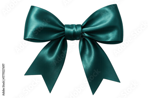 Teal satin bow creating a beautiful gift decoration, isolated on transparent background, perfect for sale and celebration design elements