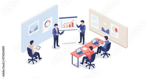 Team collaboration and data analysis in a modern office meeting
