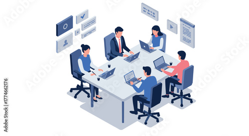 Team collaboration in modern office environment with digital interaction