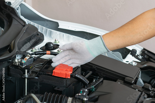 Technician check battery car terminal