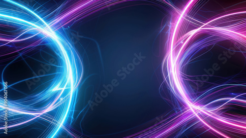 Technology Background, A vibrant, swirling array of neon colors forms an abstract background, with a blank central space perfect for text overlay. The hues include electric blues,