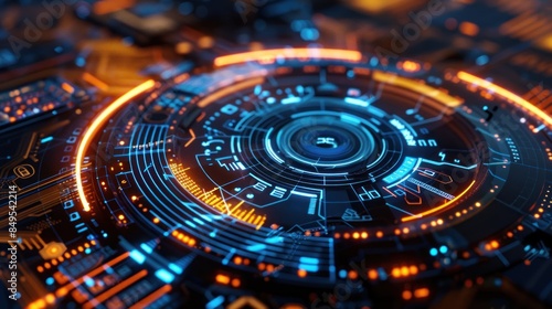 Technology digital circle style HUD interface display time machine neon light Background wallpaper AI generated image