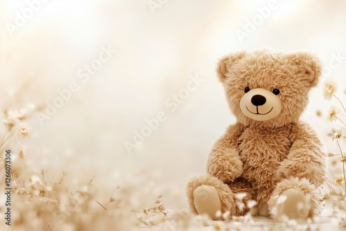 Teddy Bear in a Soft Floral Setting with copy space