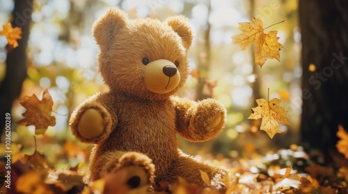 Teddy Bear in Autumn Leaves