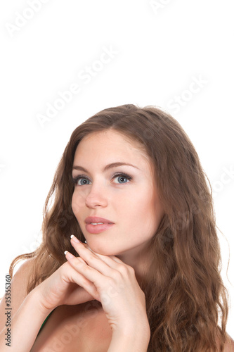 Teenage girl think looking up, series photo