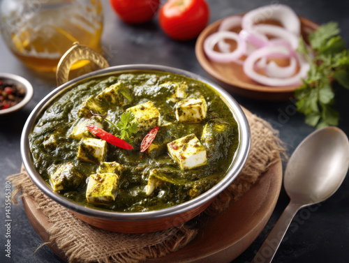 Tempting Palak Paneer in Clean Minimal Layout on White Background