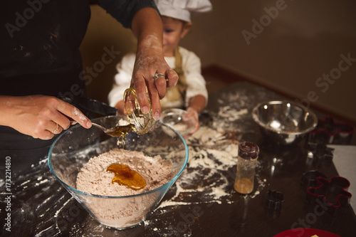 Tender Moment Of Baking With Mom And Child In A Cozy Kitchen