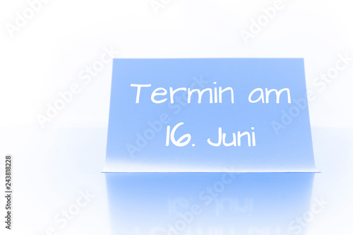 Termin am 16. Juni - blauer Zettel mit Notiz
