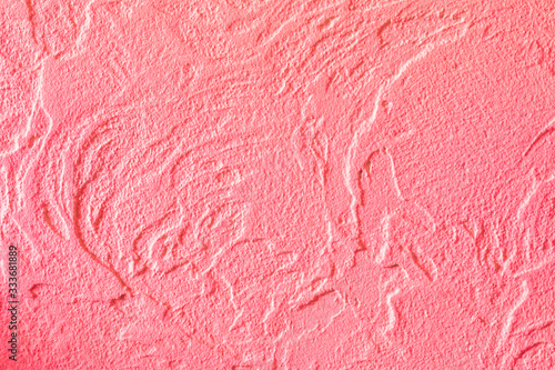 Texture of bright pink concrete wall with glaze finish. Luxury background for design on a building theme, decor theme. Handmade.