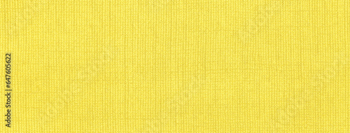 Texture of bright yellow color background from textile with wicker pattern, macro. Vintage lemon fabric