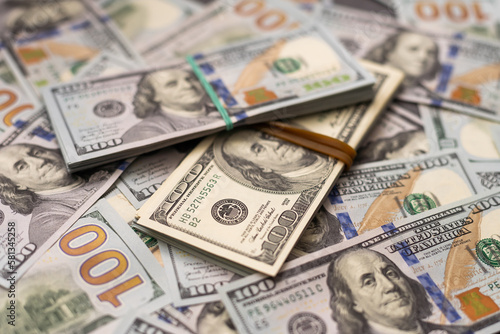 Texture US dollars. Background of one hundred dollar bills.