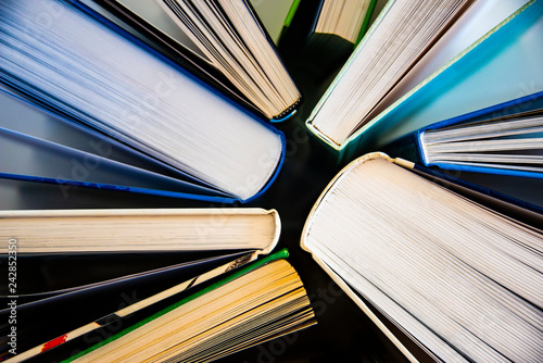 textured background from open books - close up - selective focus