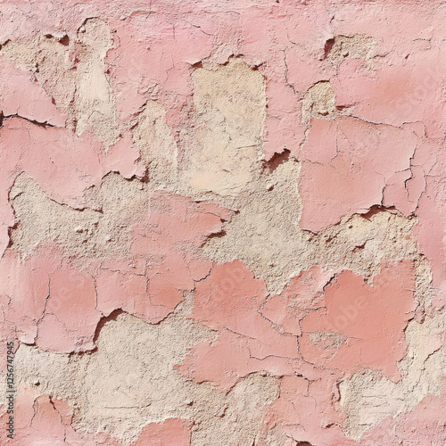 Textured Pink Wall with Flaking Paint and Cracks, Weathered Exterior Surface