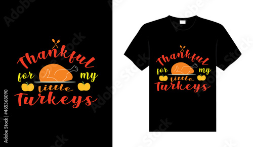 Thankful for my little turkeys Hand drawn Happy Thanksgiving design, typography lettering quote thanksgiving T-shirt design.