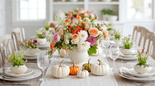 Thanksgiving Table Setting - Fall Flowers, Pumpkins, Dinner