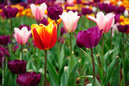 The beautiful blooming tulips in garden