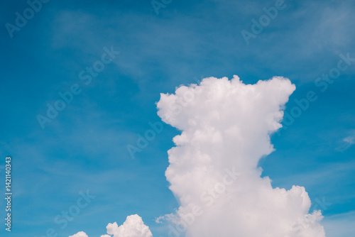 The beautiful blue sky, dotted with white clouds, glows under warm sunlight, painting a serene background that captures the peaceful essence of nature and weather.