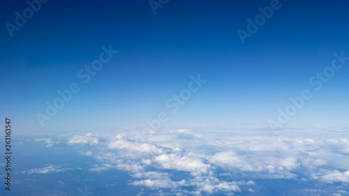 The beautiful cloudscape with clear blue sky. A view from airplane window.