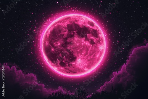 The beauty of a pink halo encircles the full moon on a clear night.