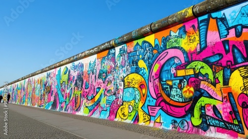 The Berlin Wall, with colorful graffiti art, symbolizing history and the reunification of a nation.