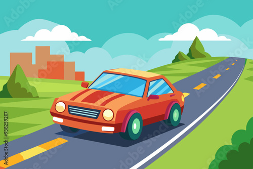 The car is on the road vector