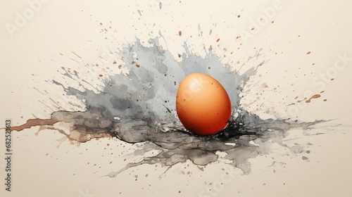 The chicken egg is golden, covered with a glossy shell. Decorated food for Easter holidays. Minimalistic background, banner, copy space