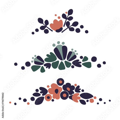 The collection of floral compositions for invitations, cards, congratulations. Plant elements for festive decoration on a white background. Hand drawing. Vector illustrations.