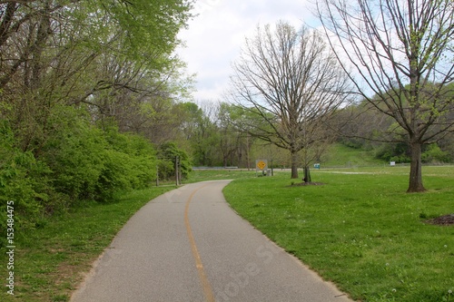 The curved walkway in the park.