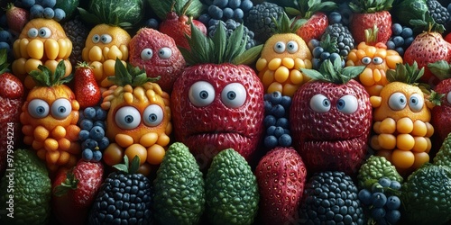 The dynamic city streets where fresh produce with eyes adds personality and excitement to everyday life