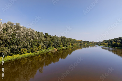 the flow of the river in the warm season in sunny weather