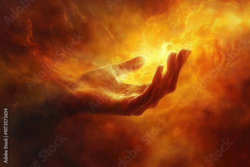 The gentle touch of a hand reaching out to comfort a sorrowful soul, bathed in a warm, ethereal glow. A moment of solace and divine compassion