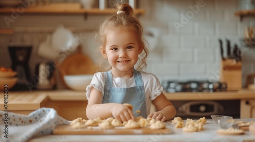 The girl makes dough. Cooking process.