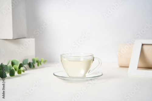 The glass holds a clear, healthy drink.