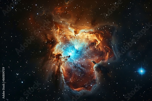 The glowing core of a radiant nebula as seen through a high-powered telescope
