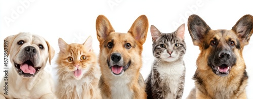 The Happy Group of Dogs and Cats Posing Together in a Studio Setting