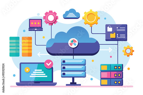 The illustration depicts the cloud storage data storage process, showcasing various devices and components connected to the cloud