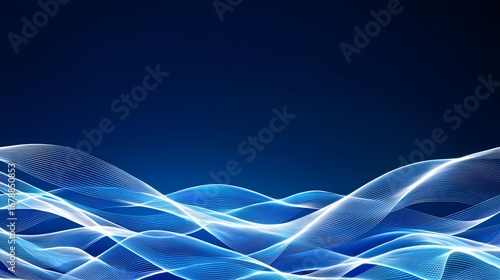 The image displays abstract glowing line art in shades of blue, creating a visually appealing and modern aesthetic, against a dark blue gradient background.