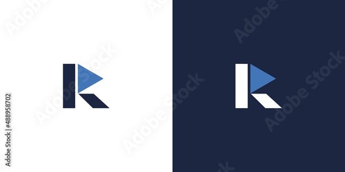 The initial logo design of the letter R is combined with a unique and interesting play symbol