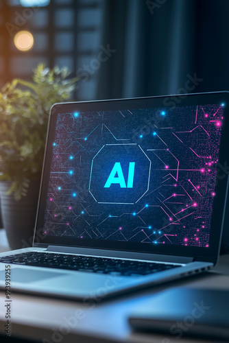 The inscription on the laptop screen "AI"