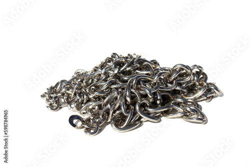 The iron chain lies on a white background.