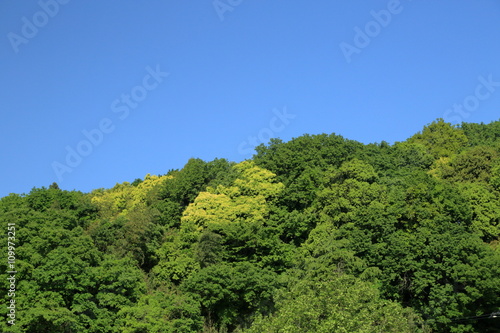 The landscape of Satoyama.The country with hills and fields, a field and a rice paddy is called Satoyama in Japan. This picture was taken in Inzai city in Chiba prefecture.