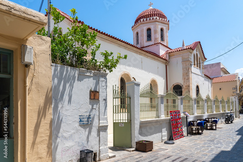 The left side of the Agia Varvara Church in the Old Town of Rethymno, Crete, Greece