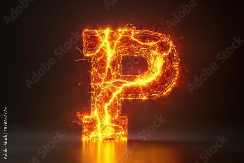 The letter P is lit up with fire and looks like it's been struck by lightning