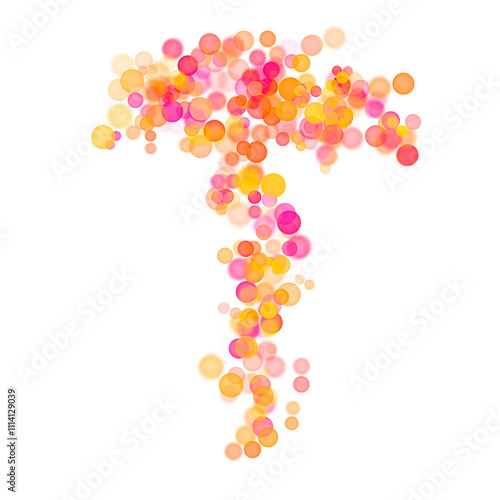The letter "T" of the English alphabet made with multicolored bokeh lights effect, Bokeh abstract isolated on white background, Blur, Glitter, Seamless polka dot pattern, Creative, Illustration design