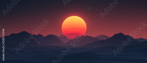 The moon's silhouette in front of the sun during a solar eclipse, with cosmic rays and stars glowing brightly in the vast sky