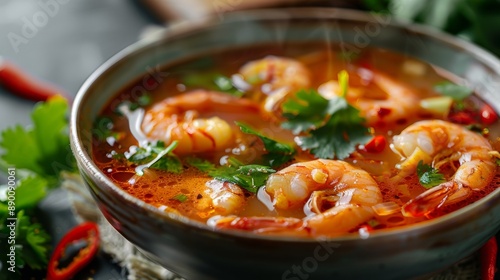 The national cuisine of Thailand. Spicy shrimp soup (Tom yam kung).
